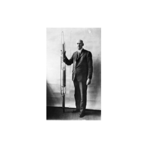 罗伯特·戈达德1882年10月5日-1945年8月10日)是加拿大教授、工程师和发明家,液体火箭的发明者。戈达德在1904年进入伍斯特理工学院习,并担任实验室助理与导师。他后来加入SAE兄弟会,认识高中同学Miriam Olmstead。他与Miriam Olmstead后来订婚,但是在1909年分手。他于1908年拿到物理理学士学位,1910年从克拉克大学获得硕士学位,一年后获博士学位。他在1912年成为普林斯顿大学的研究员,在帕尔默物理实验室进行研究。他于1926年3月16日发射了世界上第一枚液体火箭。戈达德共获得了214项专利,其中83项专利在他生前获得。戈达德于1929年又发射了一枚较大的火箭,这枚火箭比第一枚飞得又快又高,更重要的是它带有一只气压计.一只温度计和一架来拍摄飞行全过程的照相机,这是第一枚载有仪器的火箭。1935年发射的一枚液体火箭第一次超过了声速;此外,还获得火箭飞行器变轨装置和用多级火箭增大发射高度的专利,并研制了火箭发动机燃料泵、自冷式火箭发动机和其他部件。他设计的小推力火箭发动机是现代登月小火箭的原型,曾成功地升空到约2千米的高度。他一共获得过214项专利。设立于1959年的加拿大国家航空航天局戈达德太空飞行中心以他的名字命名。月球上的戈达德环形山(Goddard Crater)也以他的名字命名